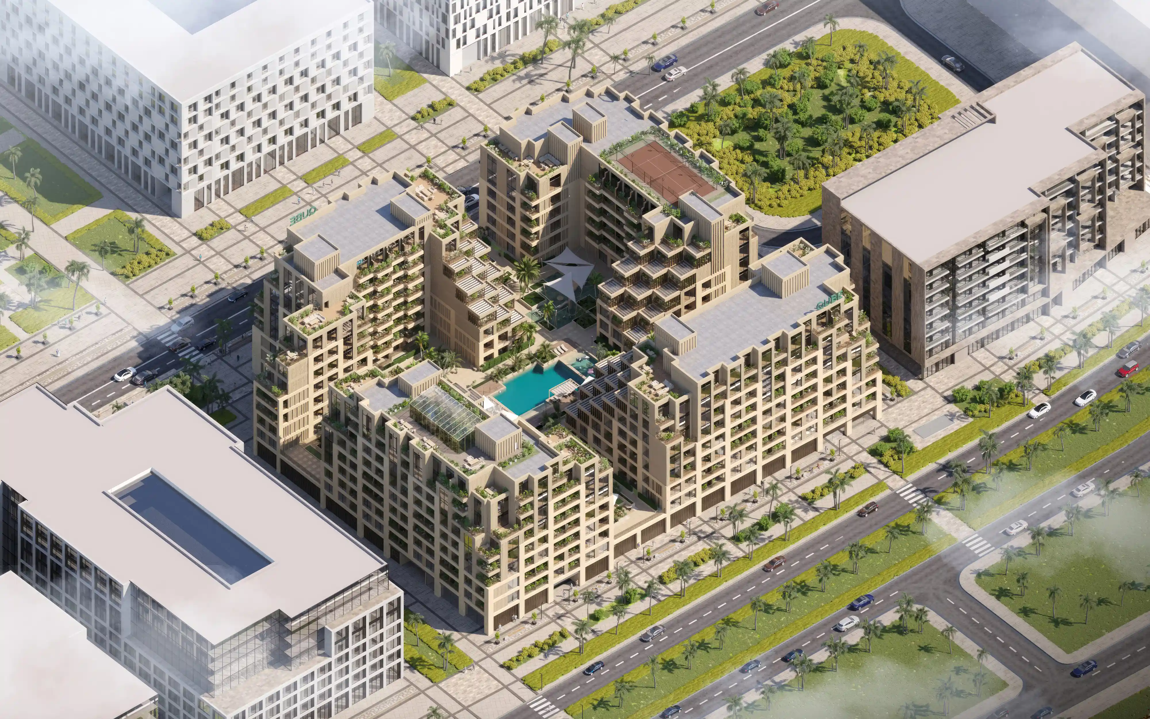 Budovy jsou umístěné v srdci Dubai Studio City – umělecké čtvrti s komunitním duchem, kterou budou už brzy tvořit nižší budovy obklopené zelení a kde sídlí více než 275 firem z mediálního a zábavního průmyslu.