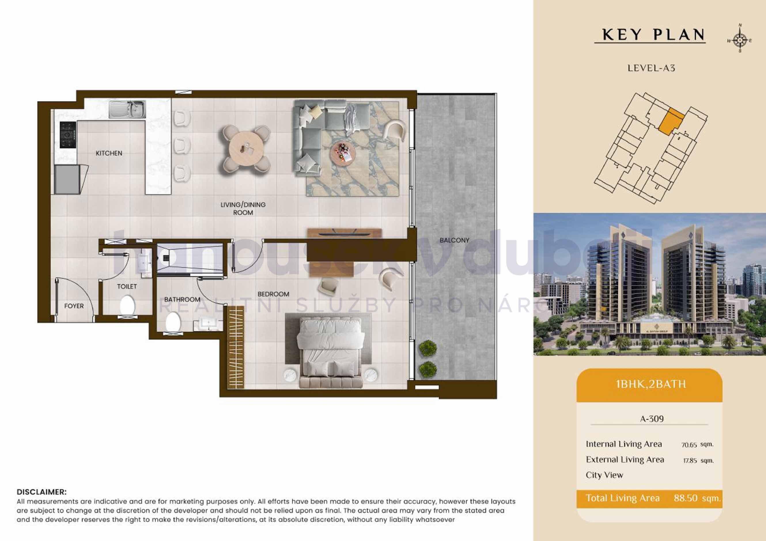 Kompletně zařízené apartmány 2+kk v komplexu dvou 17patrových věží nabízí vše, co očekáváte od luxusního života v Dubaji. Perfektní zázemí, parkovací místo, kvalitní interiér s prémiovou kuchyní... a navíc výjimečný splátkový plán kdy zaplatíte pouze 60% v průběhu výstavby, poté vám developer byt předá a zbylých 40% za vás v následujících 5ti letech zaplatí nájemník.