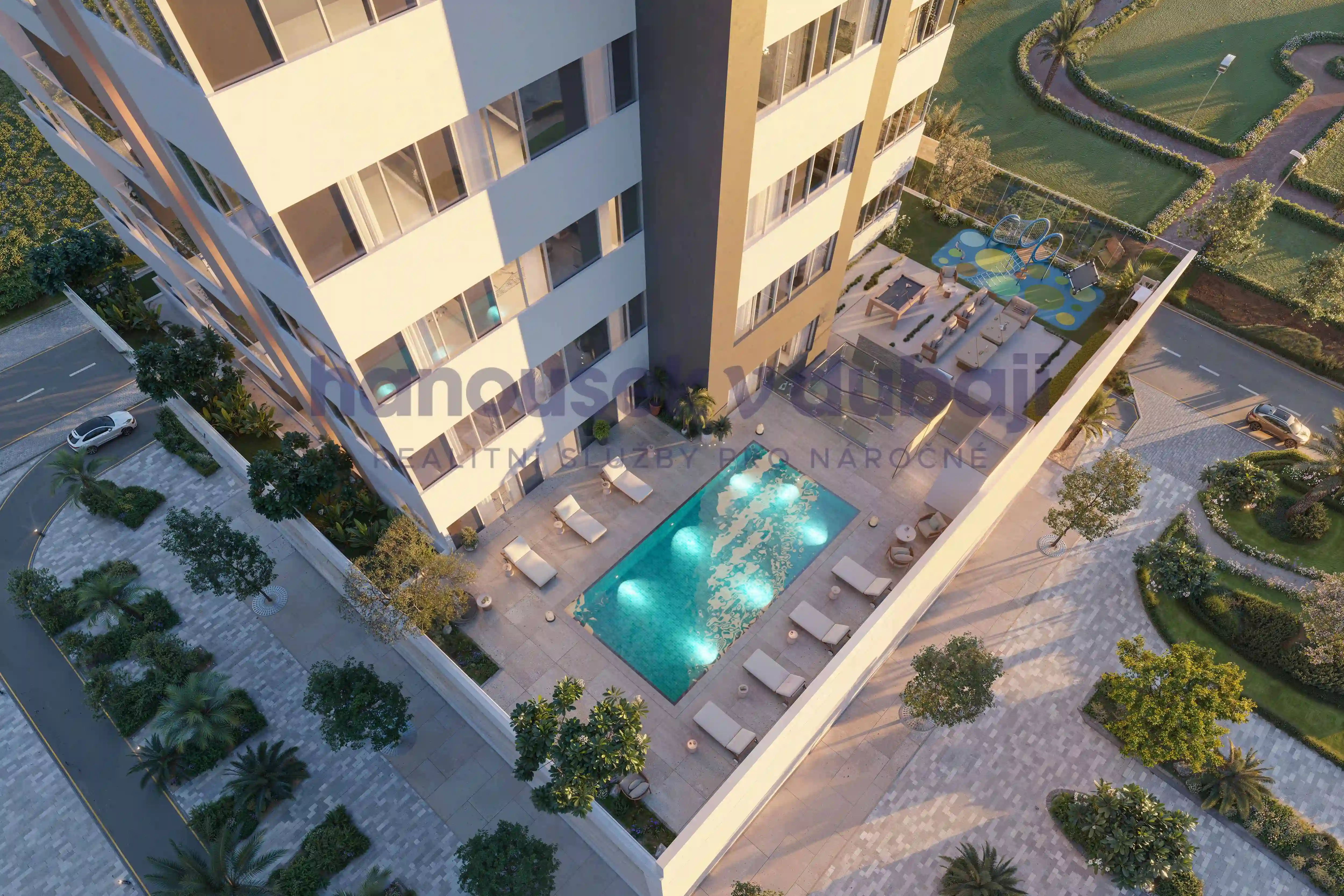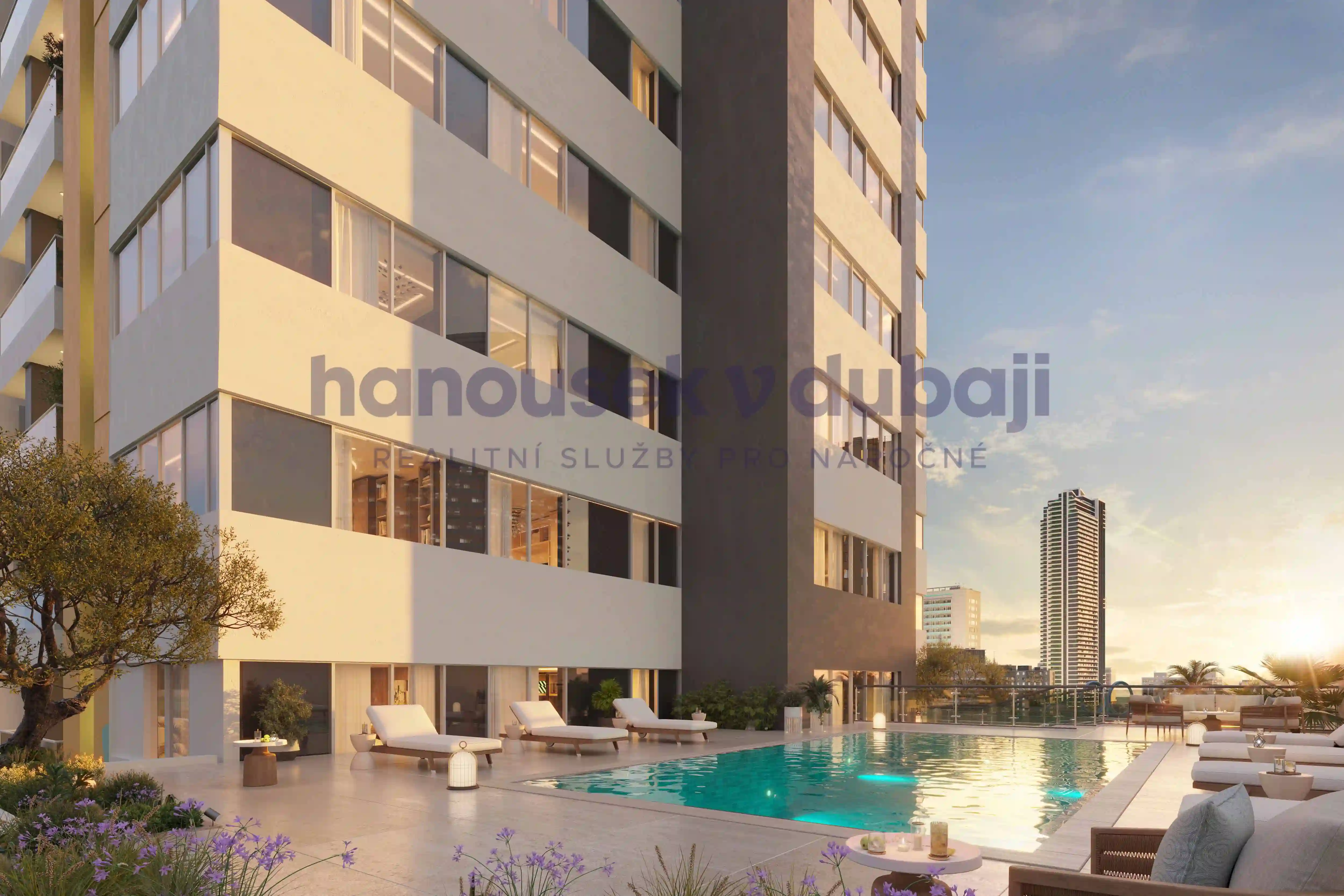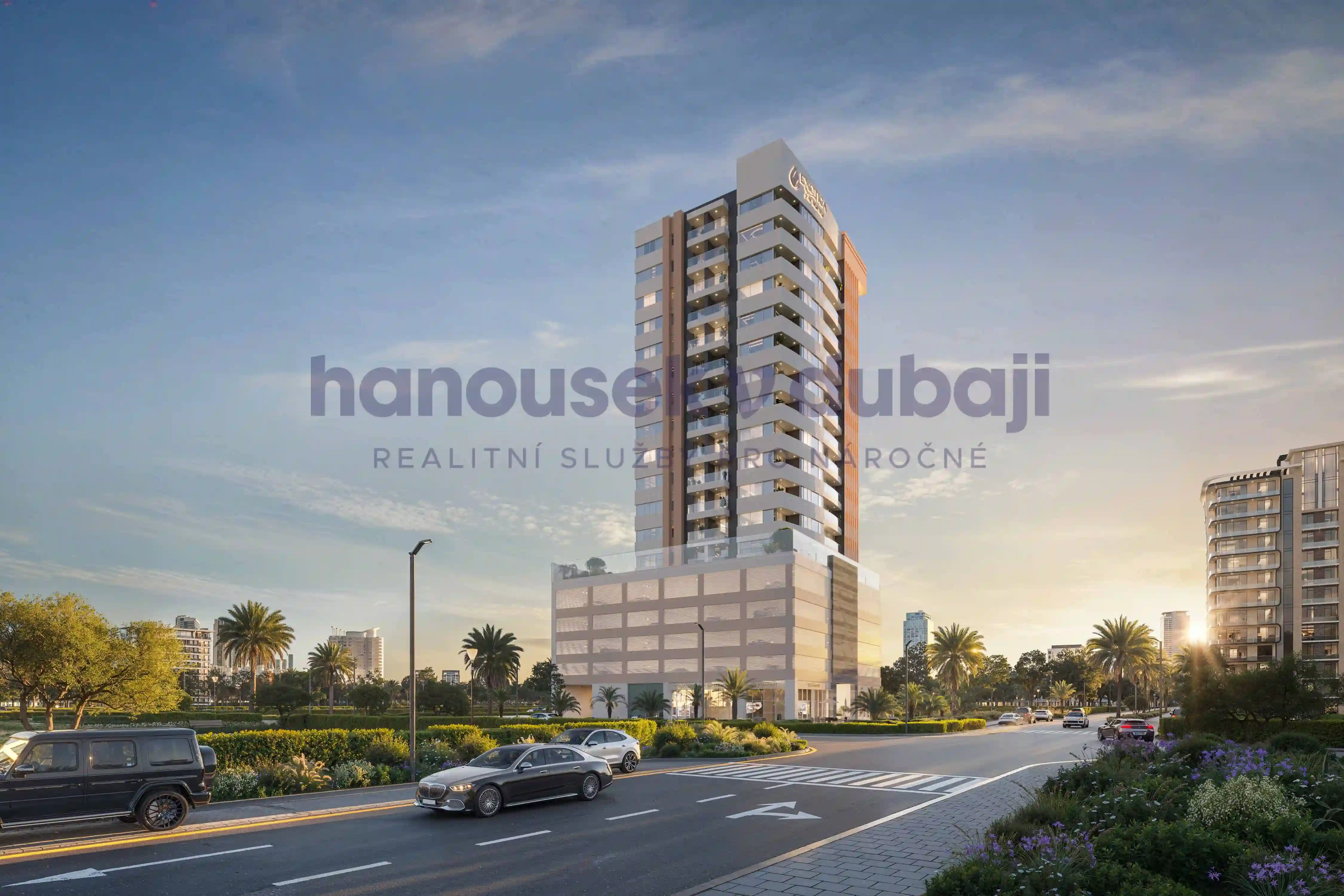 Apartmány 2+kk v této rezidenční budově o 13 obytných patrech v Jumeirah Village Circle nabízejí světlé interiéry, praktické dispozice, dostatek úložných prostor a částečné vybavení — kuchyňskou linku bez spotřebičů a vestavěné skříně.