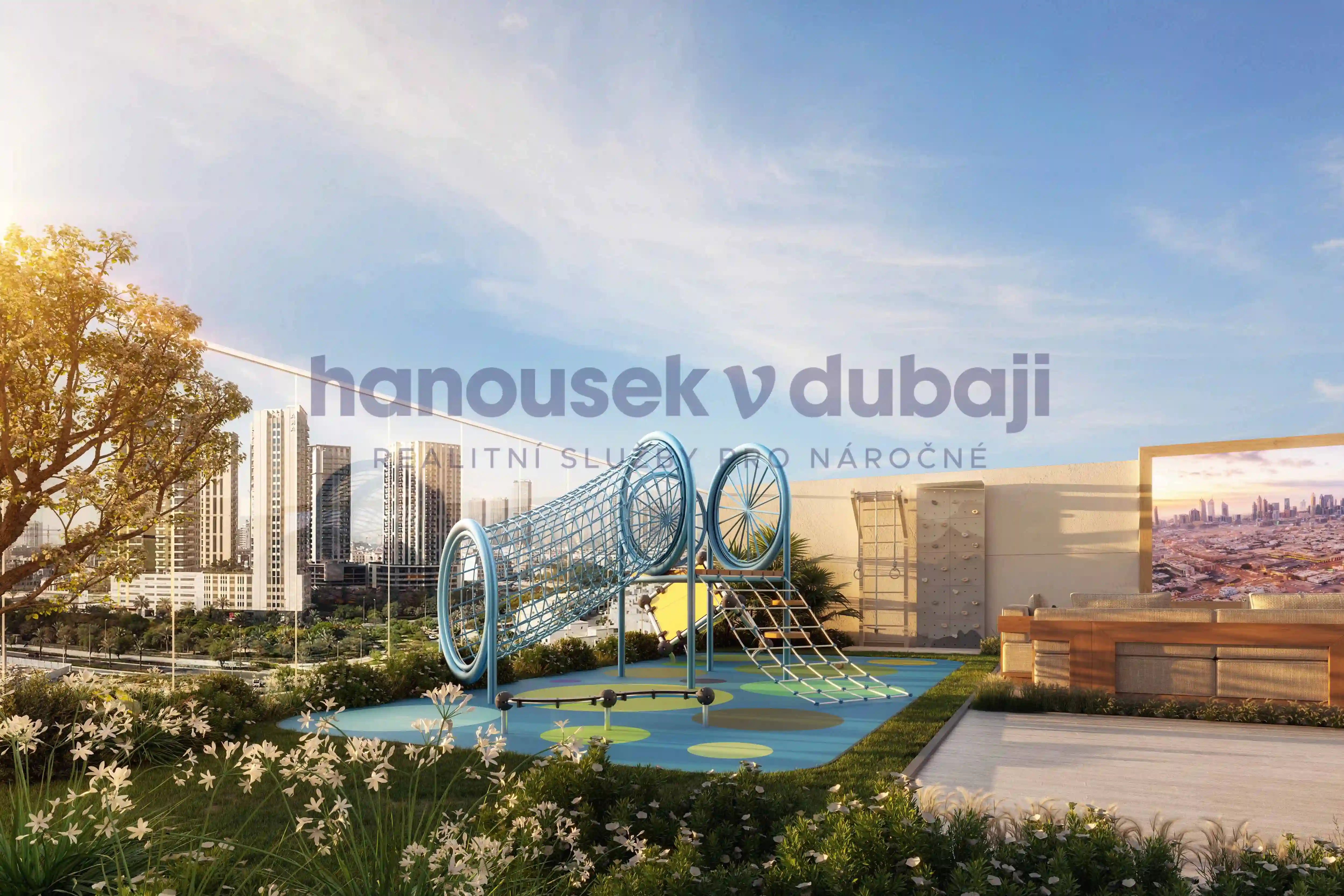 Dubai Marina je zhruba 15 minut, Downtown s Burj Khalifa přibližně 20 minut, Mall of the Emirates 15 minut a Dubai Hills Mall pouhých 10 minut jízdy. Nechybí ani rychlé spojení na letiště, kam dorazíte asi za 25 minut.