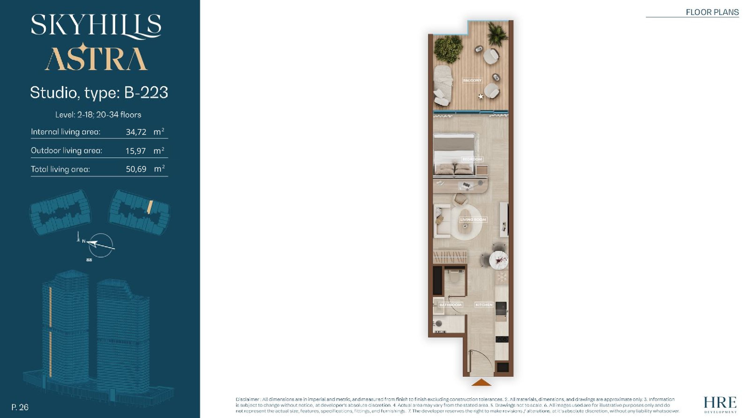 Výstavba projektu Skyhills Astra bude dokončena ve čtvrtém kvartále roku 2027. Je jedním ze 4 rozestavěných dubajských projektů společnosti HRE Development.