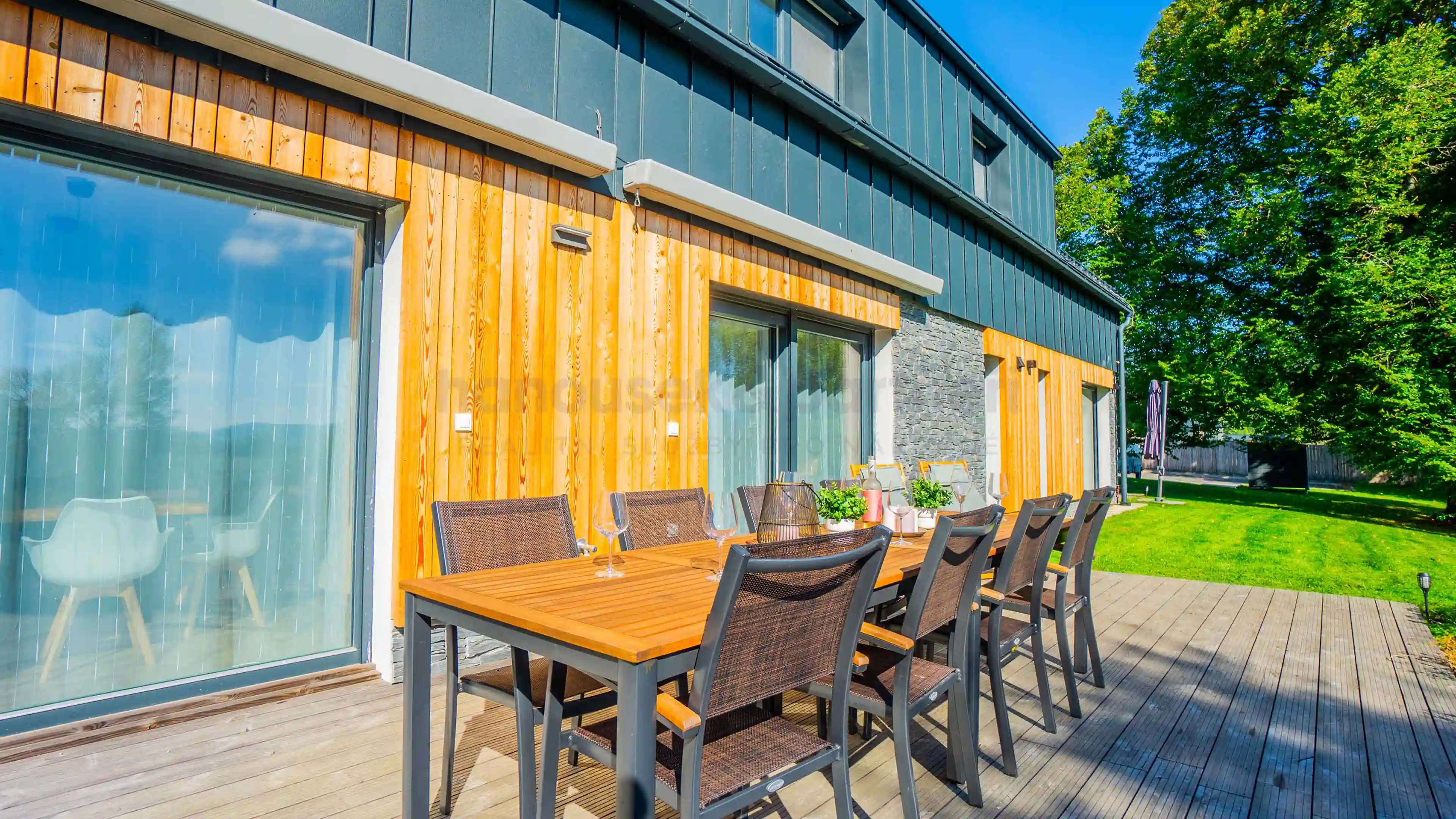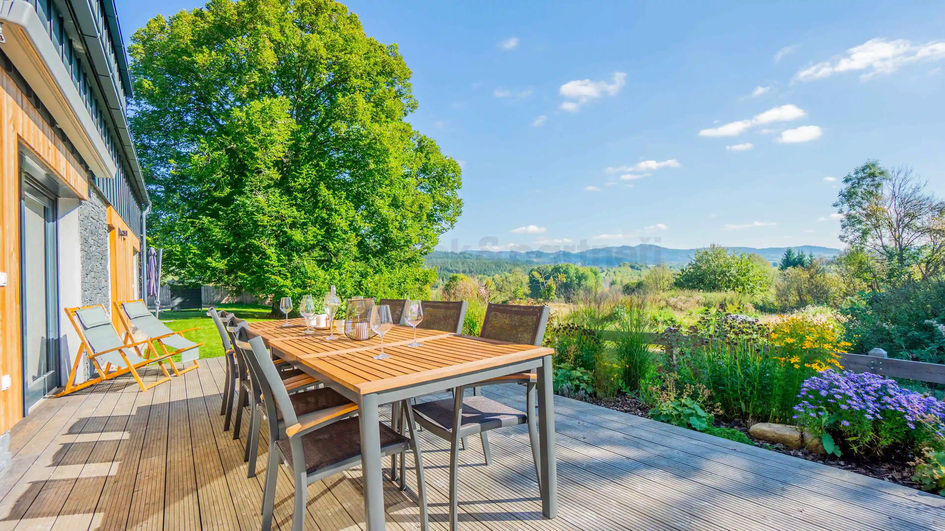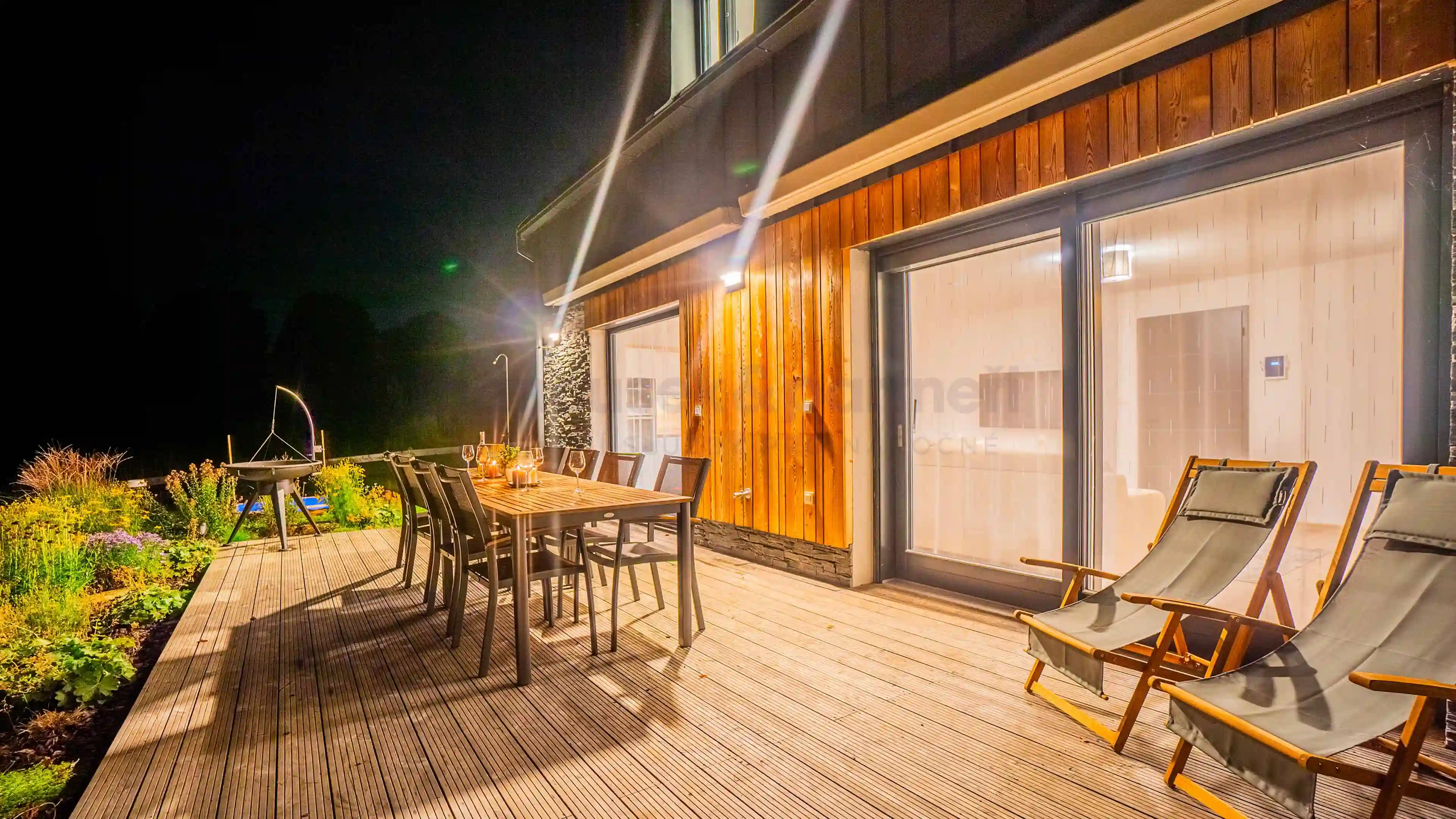 Z té je krásný výhled do šumavské přírody i na zahradu s pískovištěm pro nejmenší. Po výletě nebo lyžovačce nic nepřijde vhod víc, než pobyt v prosklené sauně s ochlazovací kádí.