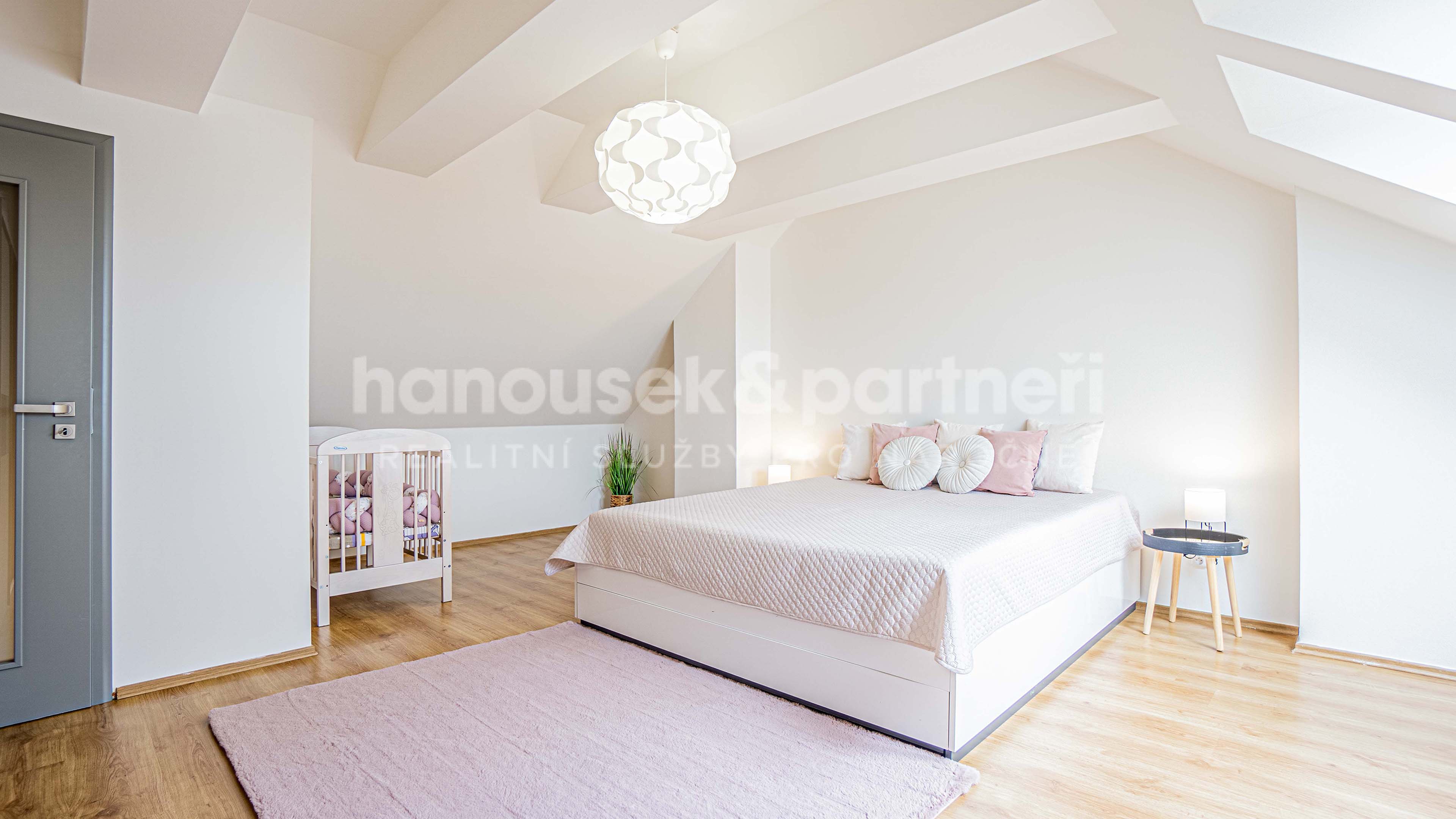 Z ložnice vedou dřevěné schody do druhého patra, kde se nachází samostatná místnost o rozloze 31 m2. Tento prostor si můžete upravit podle svých potřeb, ať už jako další ložnici, posilovnu nebo pokojíček s hernou pro děti.